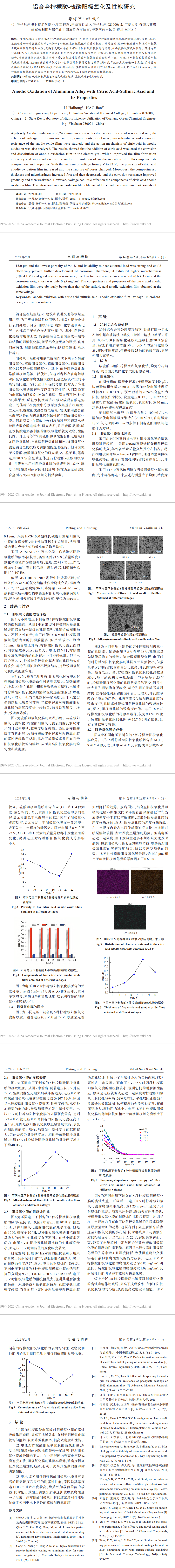 ★铝合金柠檬酸-硫酸阳极氧化及性能研究