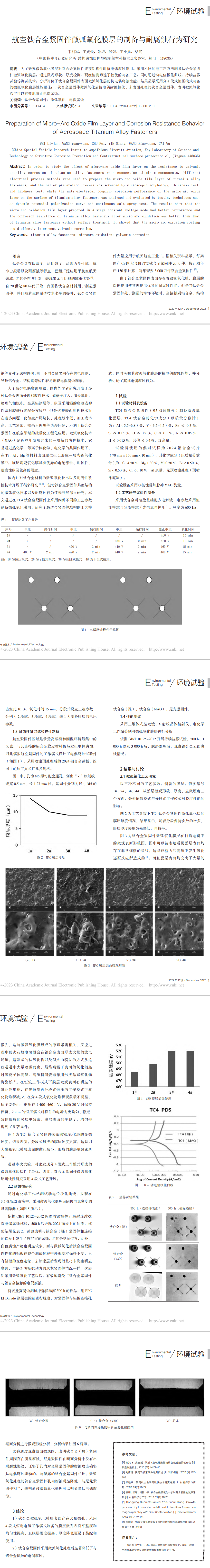 ★航空钛合金紧固件微弧氧化膜层的制备与耐腐蚀行为研究