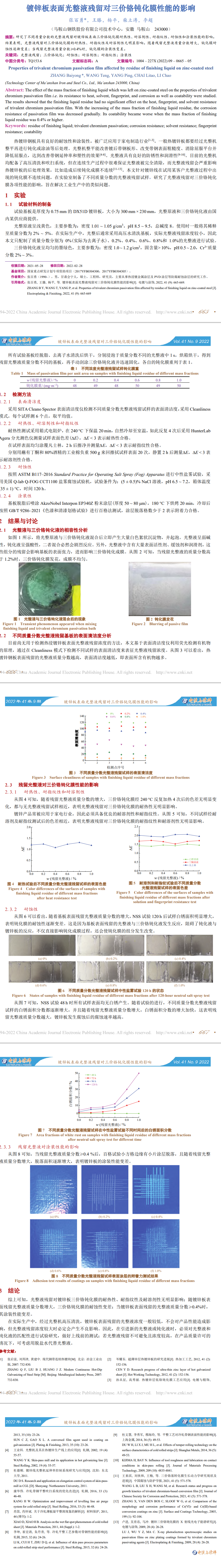 ★镀锌板表面光整液残留对三价铬钝化膜性能的影响