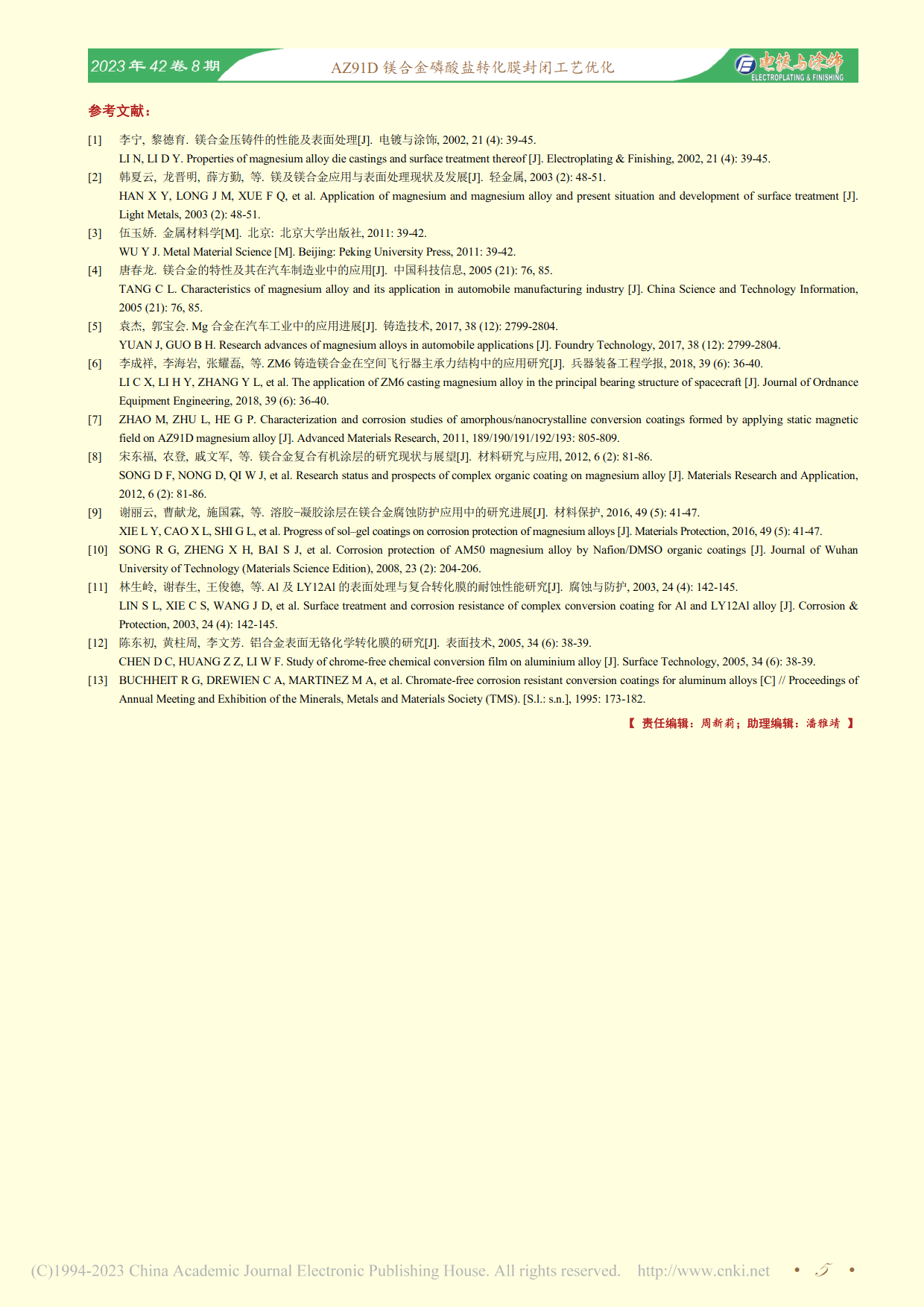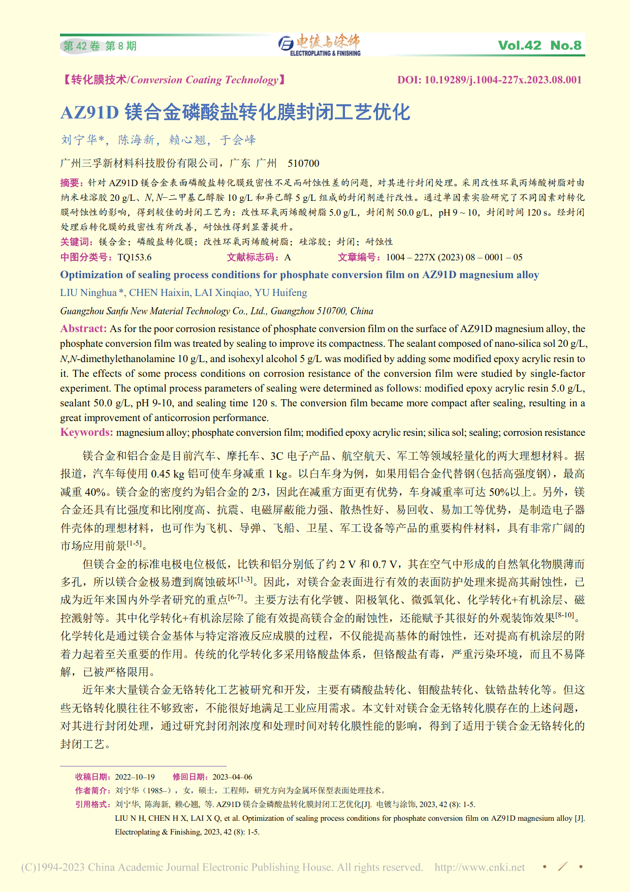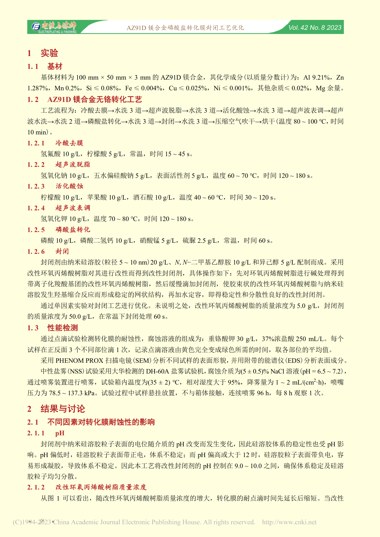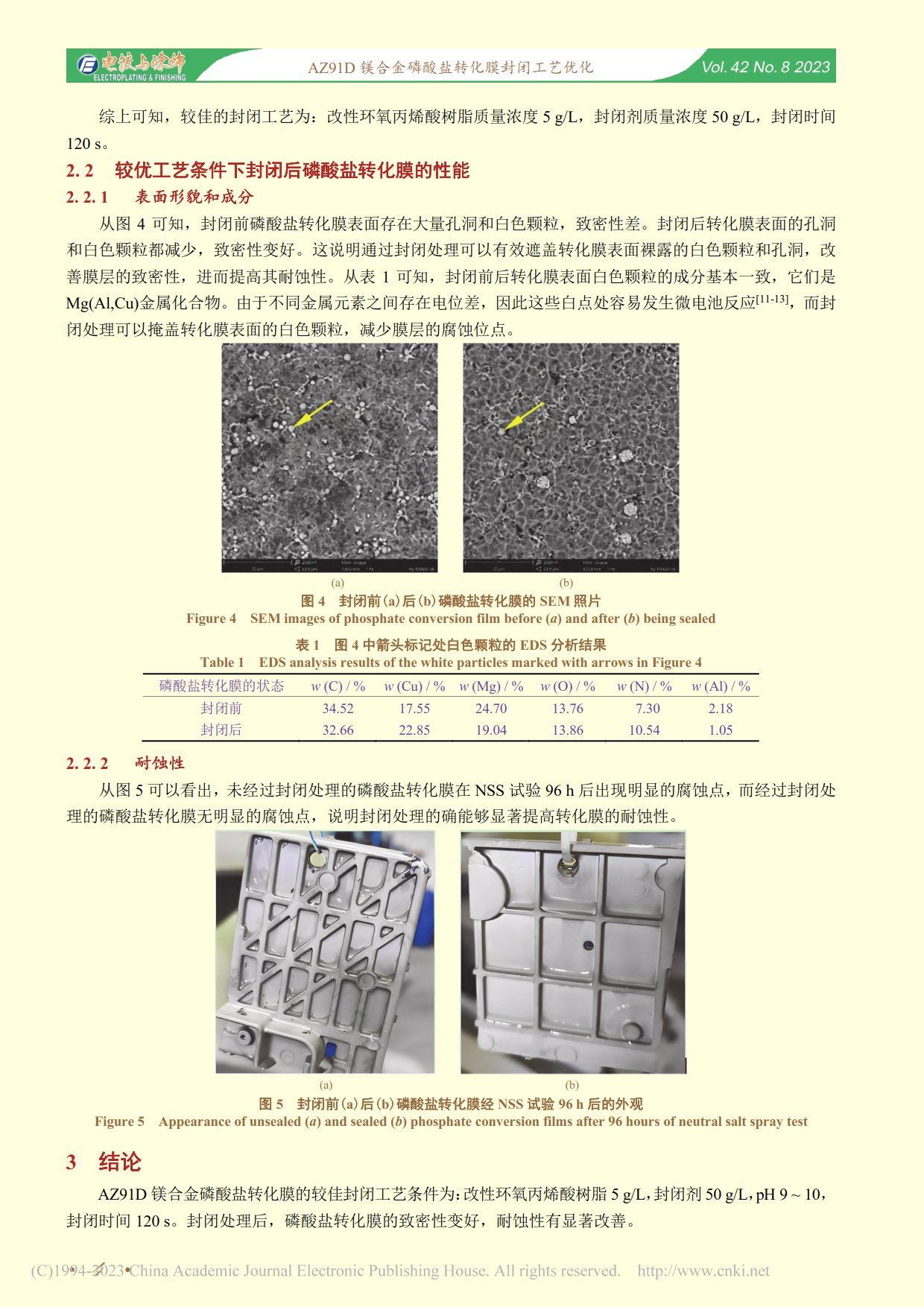 ★AZ91D镁合金磷酸盐转化膜封闭工艺优化